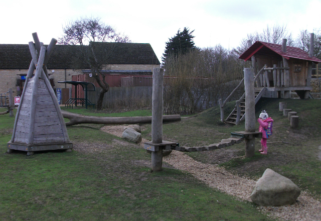 And then there are the two playgrounds. There’s one just by the café/visitor centre, suitable for smaller children. And a bigger one (the Tree House) in the woods, out the back of the car park – more suitable for kids 6 years and over. They are both brilliant. Little Miss loves playing in the one by the café. There is a rope hammock, a little wooden tepee, where Little Miss likes to serve up cups of tea, a little house with a slide, stepping stones and balance beams. Hours of fun if you are 2-years old!
